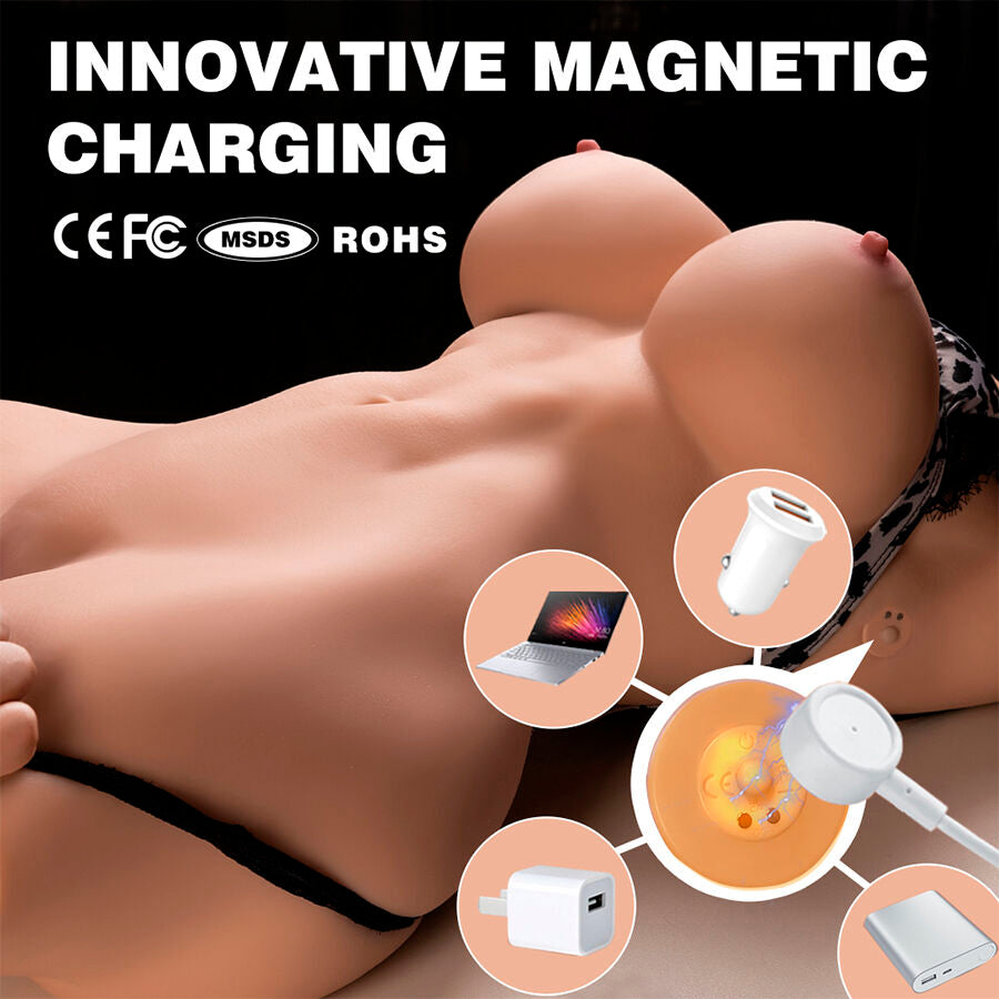 - Diseño hiperrealista con detalles anatómicos: Este torso ha sido diseñado para replicar fielmente el aspecto y la sensación del cuerpo femenino. Su estructura incluye: Senos moldeables y suaves, que brindan una experiencia táctil placentera. Cintura definida y curvas naturales, proporcionando una apariencia realista. Labios vaginales detallados y una entrada anal realista, con texturas internas diseñadas para una estimulación auténtica.